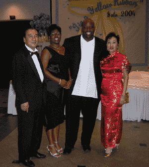 Grandmaster Cheng & his wife picture with Mr. & Mrs. Brown. Wang's Martial Arts students donated $2500.00 to Northease Hospital Foundation with raffle ticket fundraising.